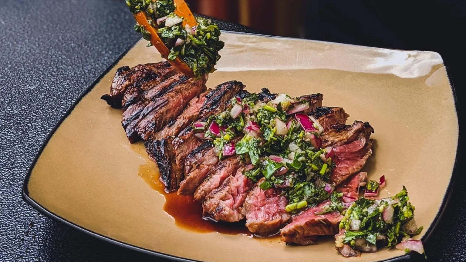 Sprinkle with sea salt and freshly ground pepper, grill briefly over high heat, let rest, and slice across the grain. Delicious with our homemade chimichurri.